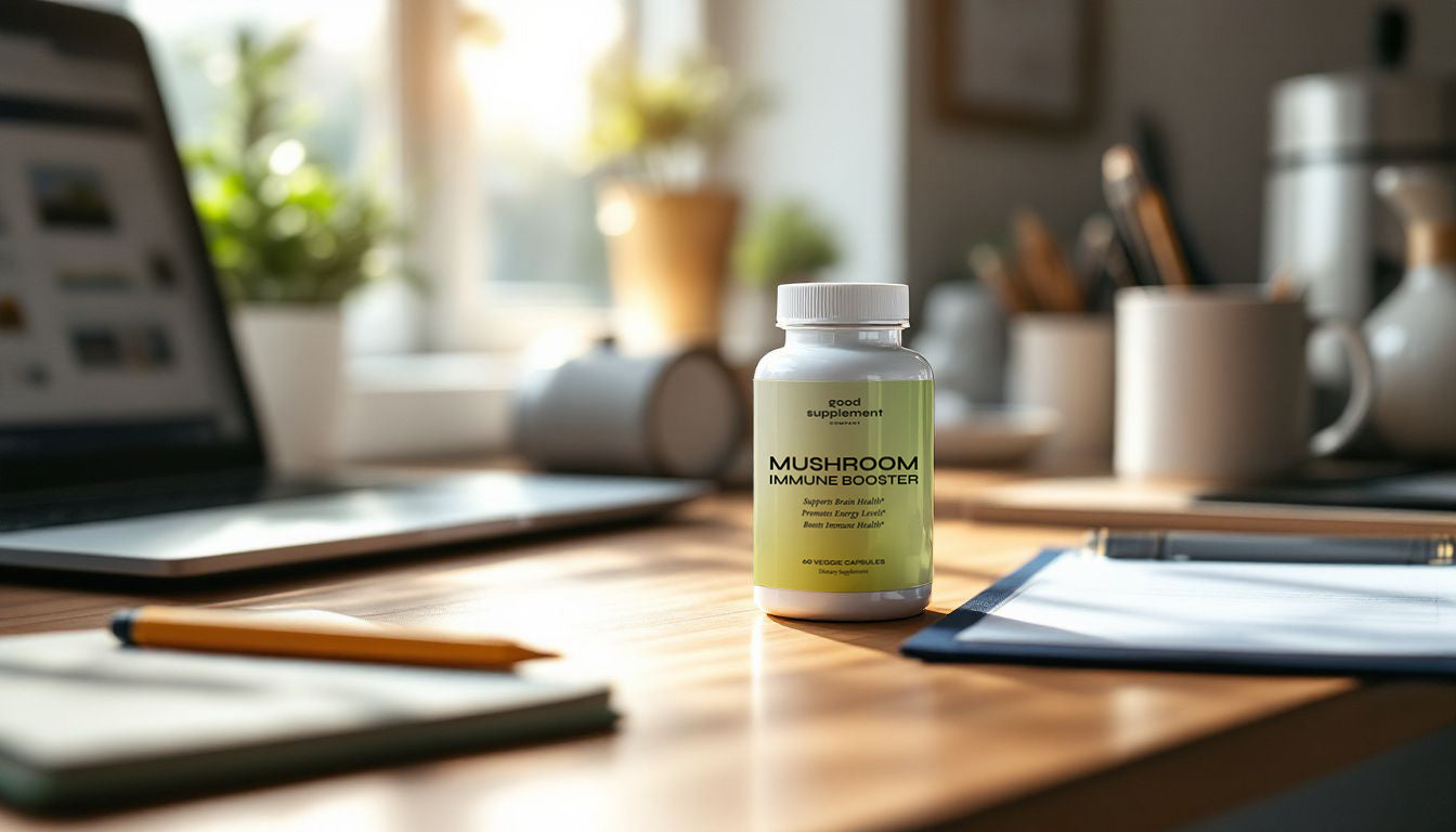 Support your wellness naturally with our Mushroom Immune Booster, crafted from a potent blend of functional mushrooms, including Cordyceps, Reishi, Shiitake, and Lion's Mane.