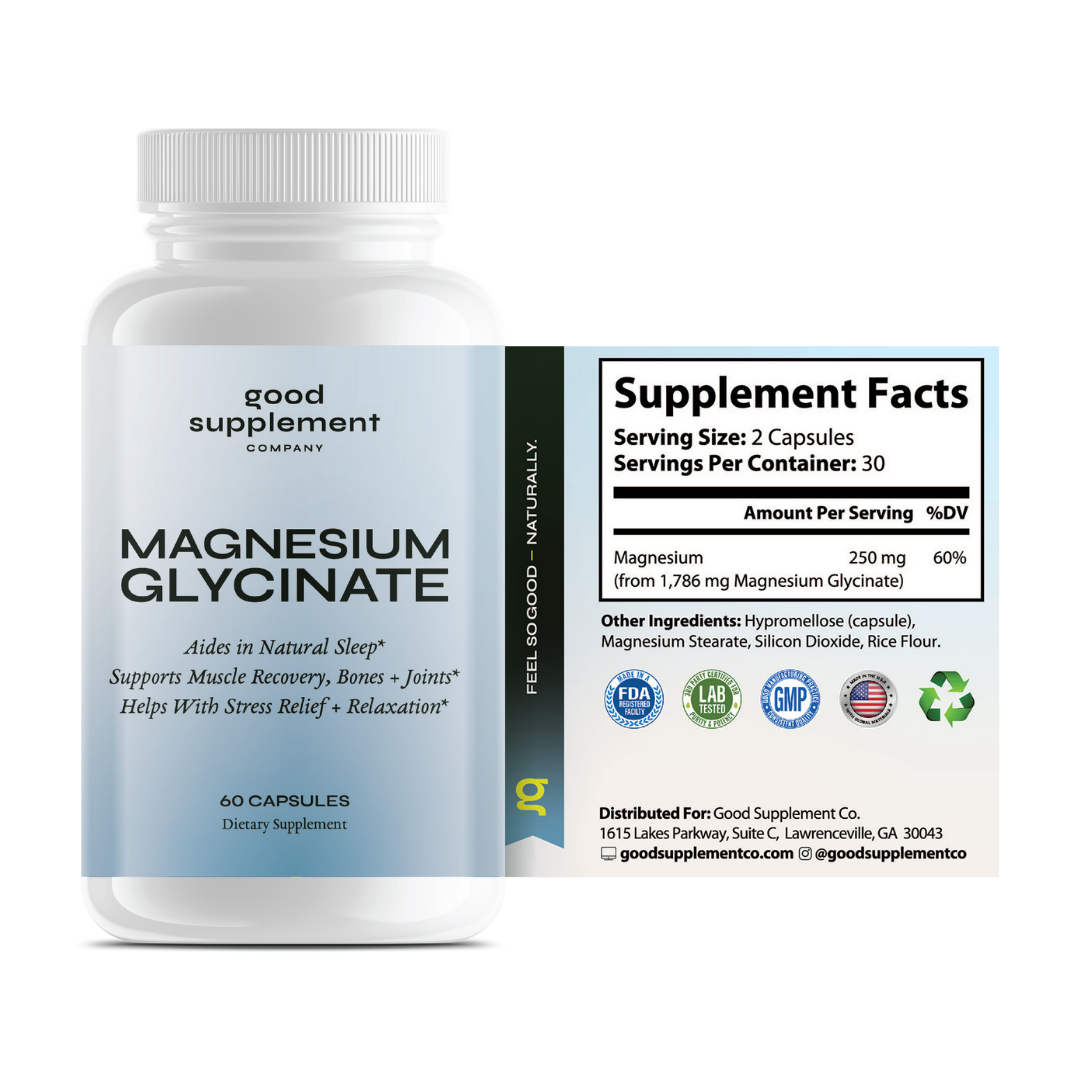 - Magnesium Glycinate – Supports muscle recovery, quality sleep, balanced mood, and over 300 biochemical processes in your body. Highly absorbable, gentle on the stomach, and essential for reducing stress on your system.